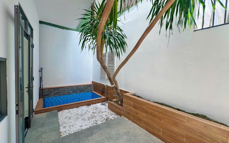 Hồ bơi nhỏ ngay trong sân sau, tạo không gian nghỉ dưỡng riêng tư.