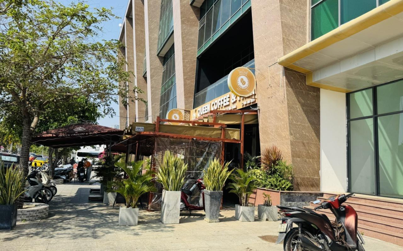 Mặt tiền: Thiết kế ôm mặt tiền rộng, tạo không gian mở tối đa, thu hút mọi ánh nhìn từ người qua đường.